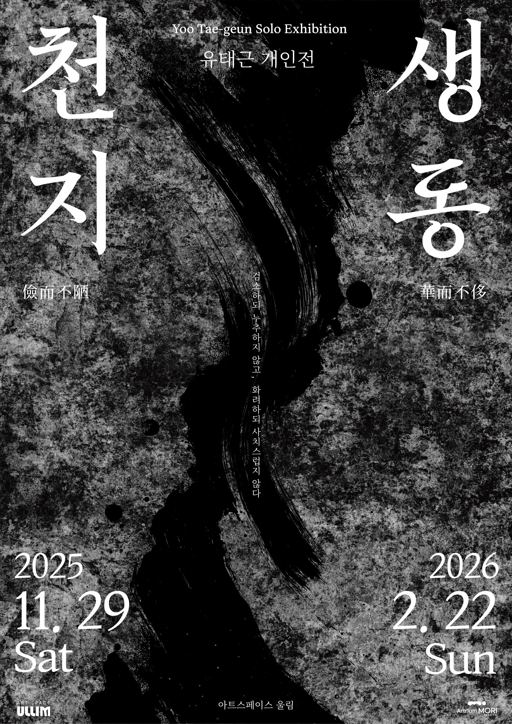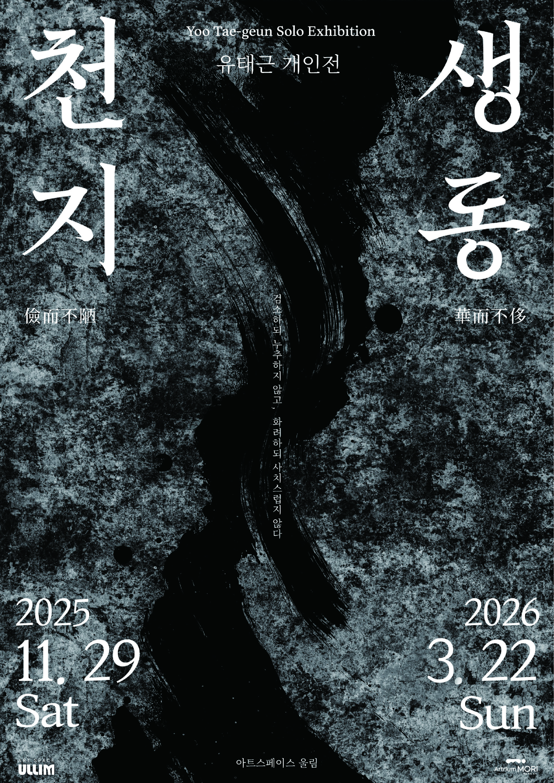 연말을 알리는 화려한 불빛이 천천히 일상을 감싸는 시기, 아트스페이스 울림은 청마 유태근 작가의 개인전 《천지생동 天地生動》을 개최한다. 도예가이자 회화 작업을 통해 도자예술의 새로운 확장성을 증명해온 유태근은 한 매체의 경계에 머무르지 않는 독자적 창작 세계를 구축해온 작가이다.