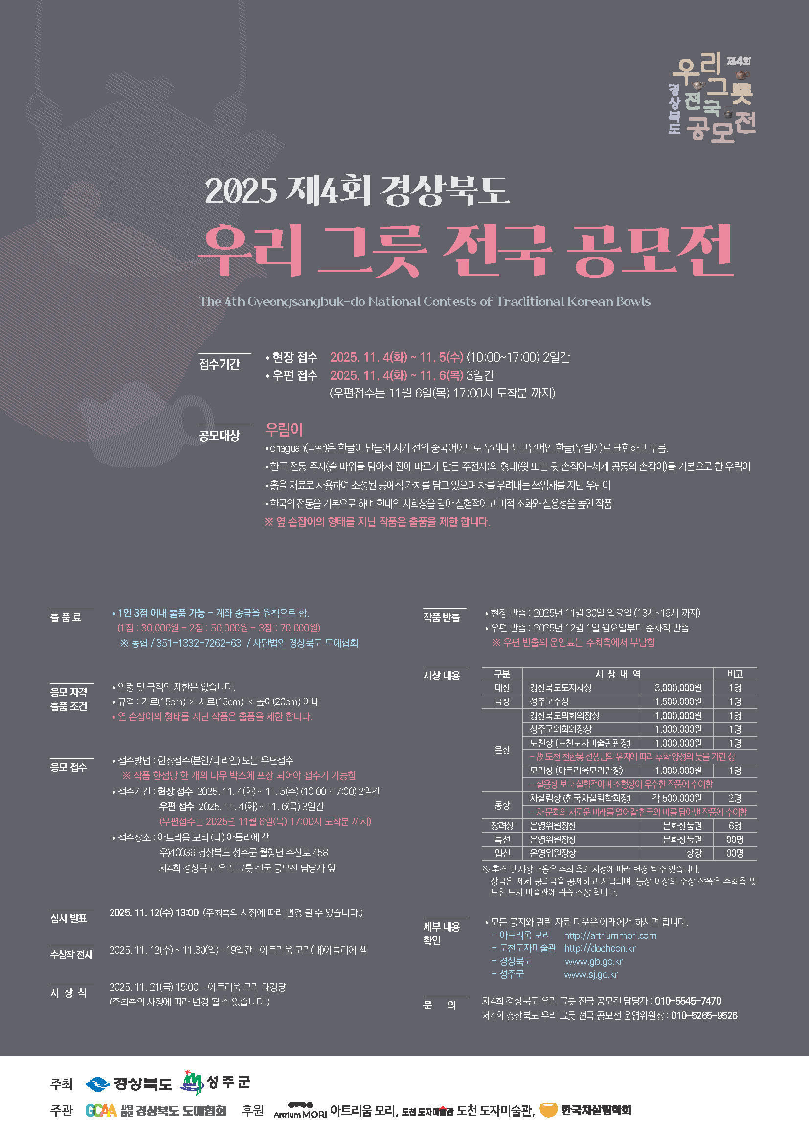 □ 문의 : 제4회 경상북도 우리 그릇 전국 공모전 담당자 - 010-5545-7470